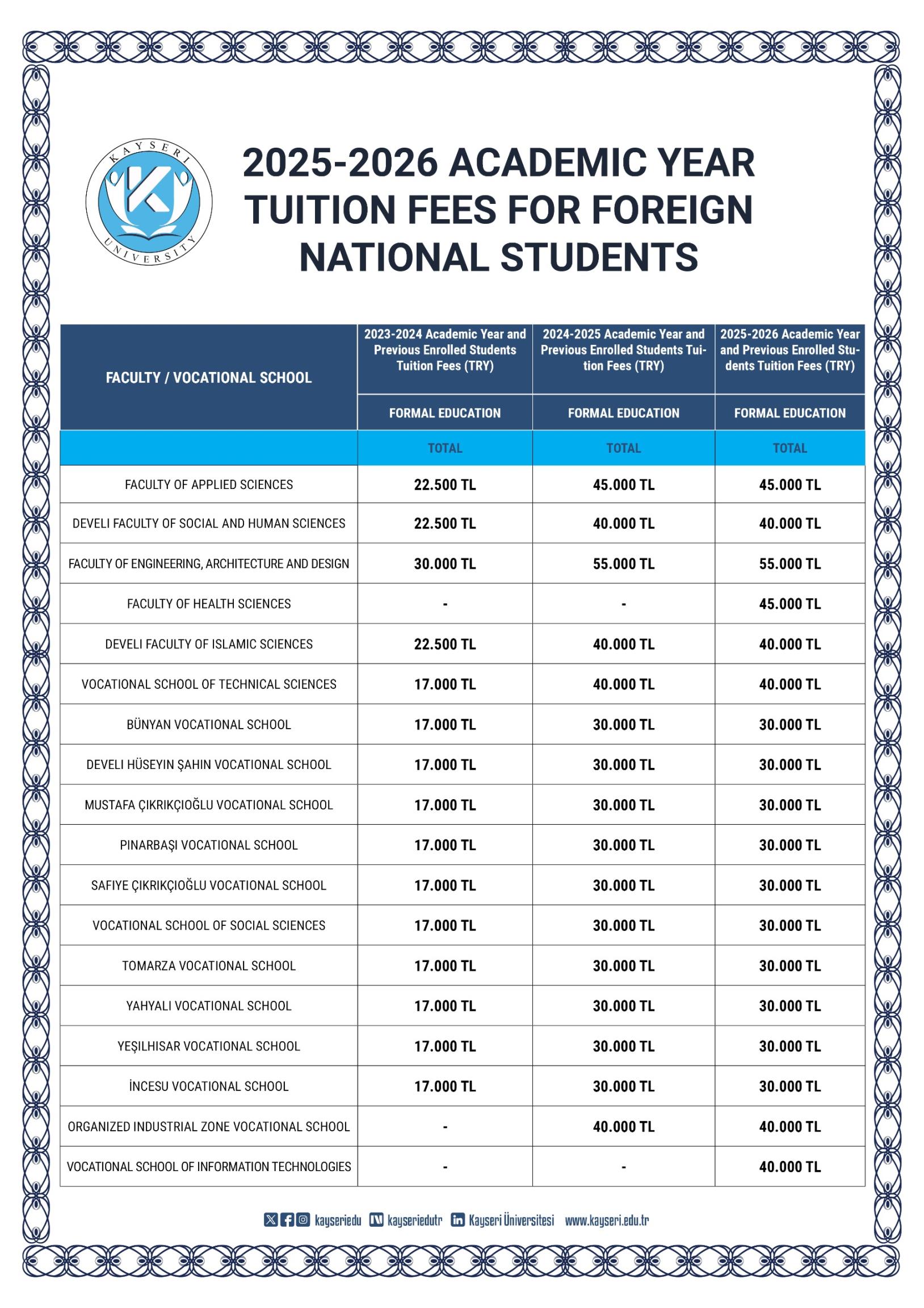 2025-2026 Academic Year Tuition Fees